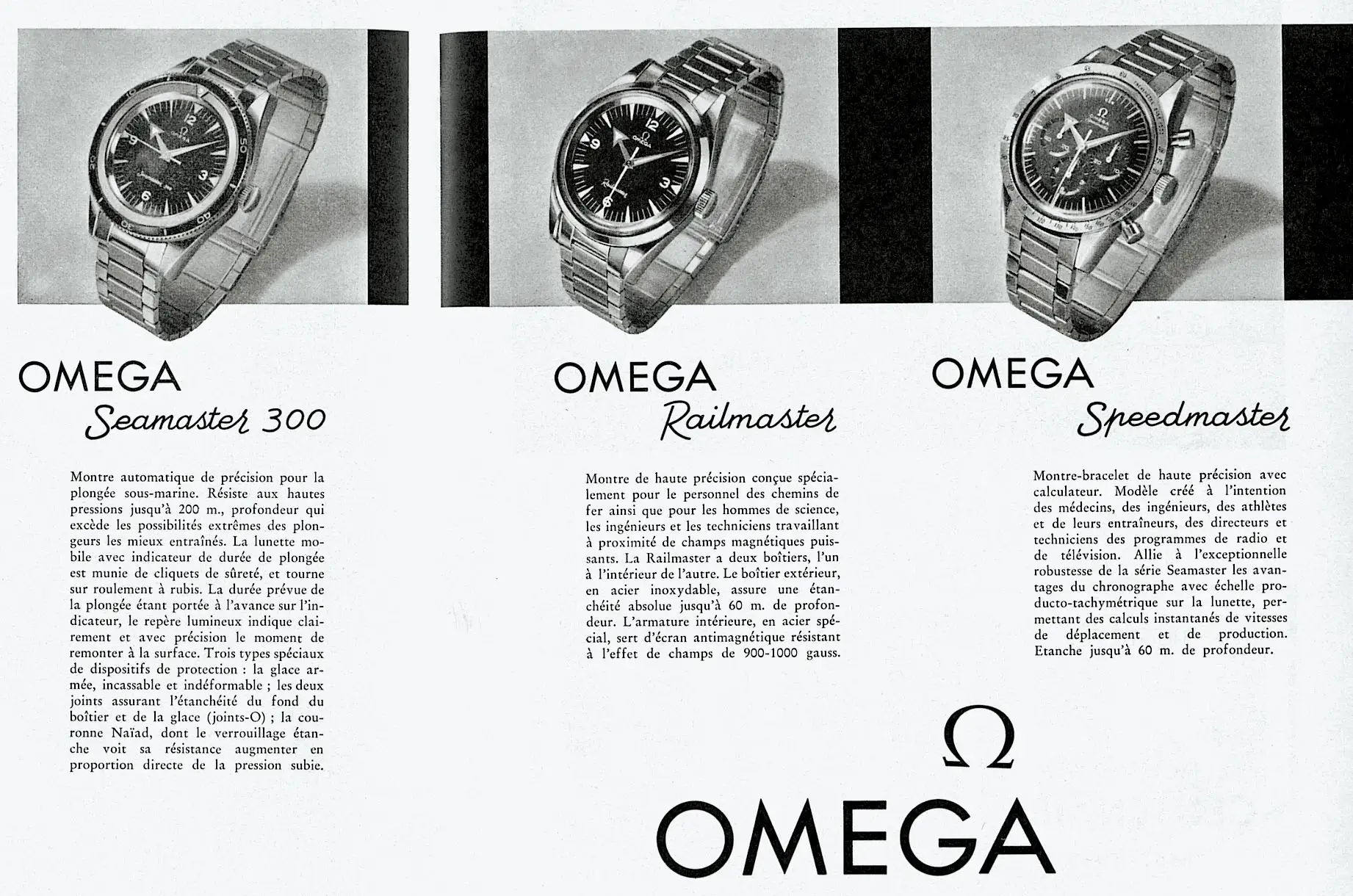 OMEGA advertisement for the professional trilogy, which was introduced in 1957.