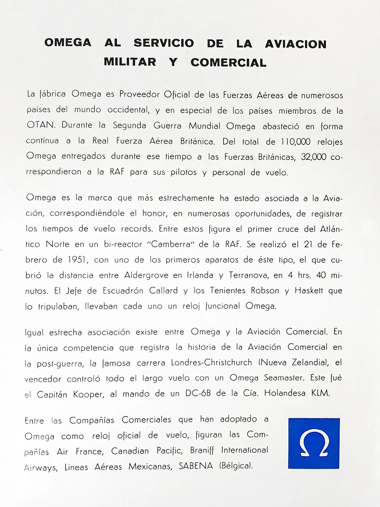 This page highlights the long-standing and solid relationship between OMEGA and the world of aviation.