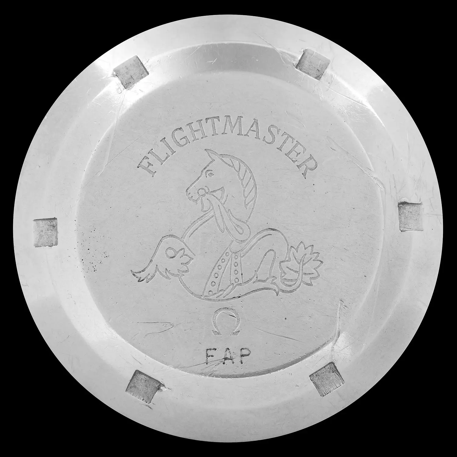 Two types of casebacks are documented for the Flightmaster. They differ noticeably in the size of the FAP engraving and in the FLIGHTMASTER inscription, which is larger and rendered in bold on the earlier examples.