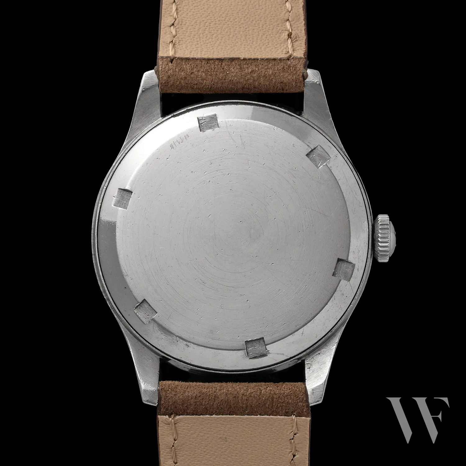 The watch features a classic dial layout, often with Arabic numerals or simple applied indexes.