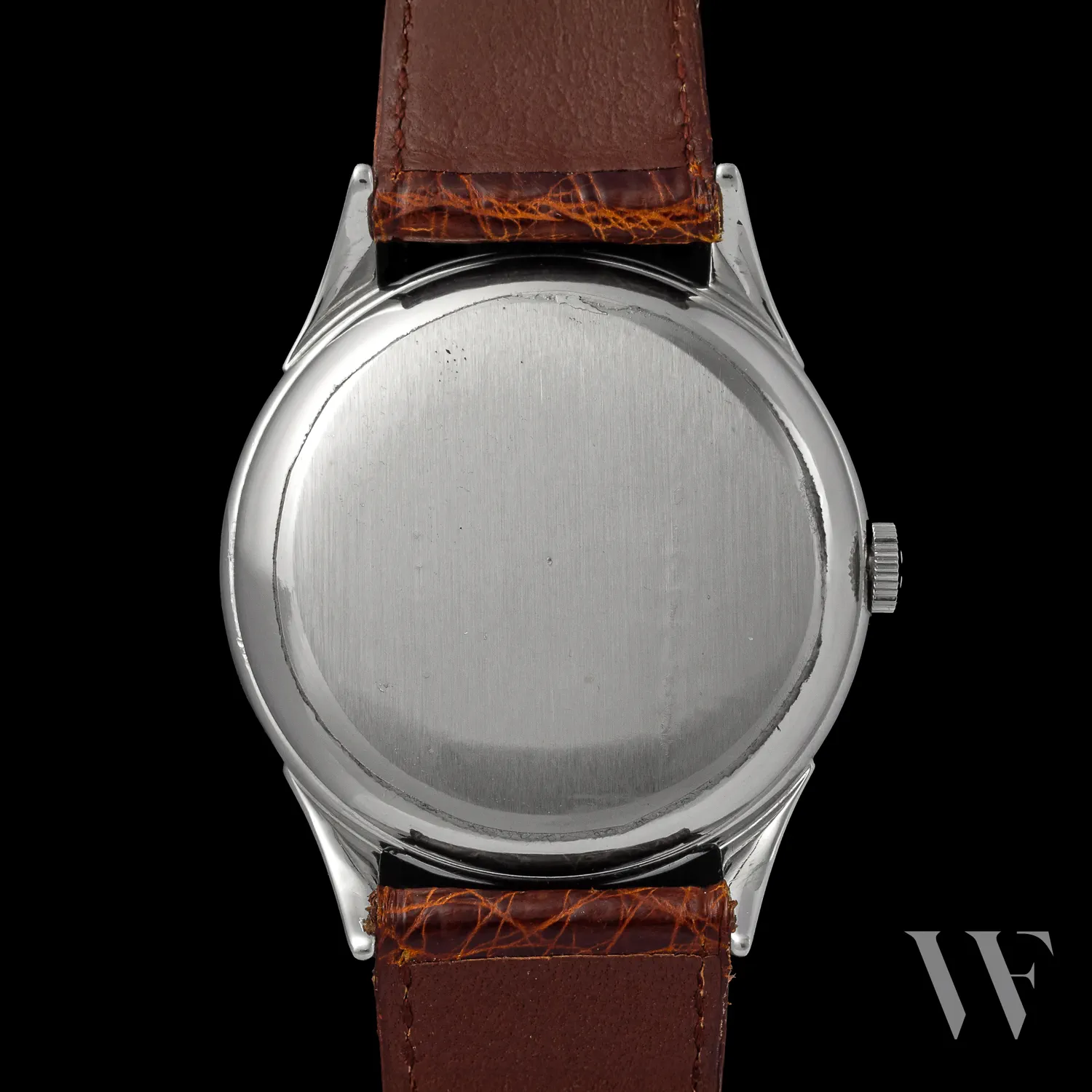 This example, fitted with “spider” lugs, differs from the other two reference 2603 examples of the collection, by its dial that features printed Arabic numerals and no applied indexes.