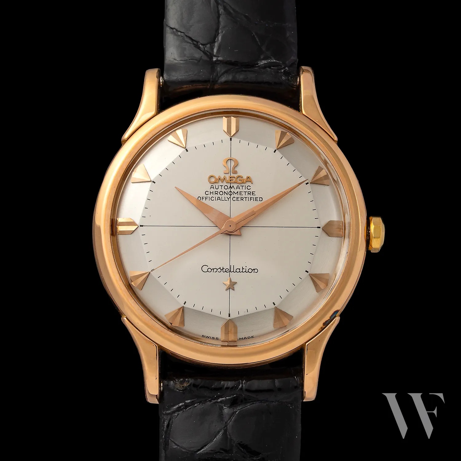 Reference 2648 is an early-1950s Omega Constellation, fitted with the caliber 354 and chronometer-certified, as indicated on the dial.