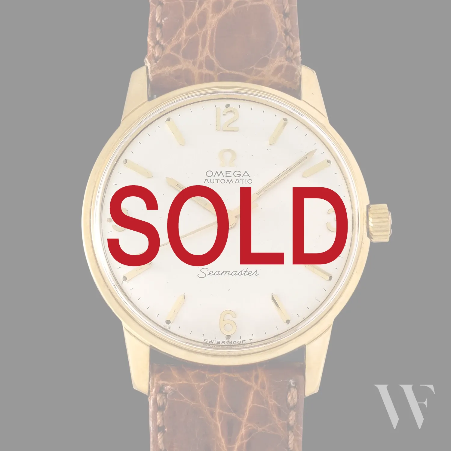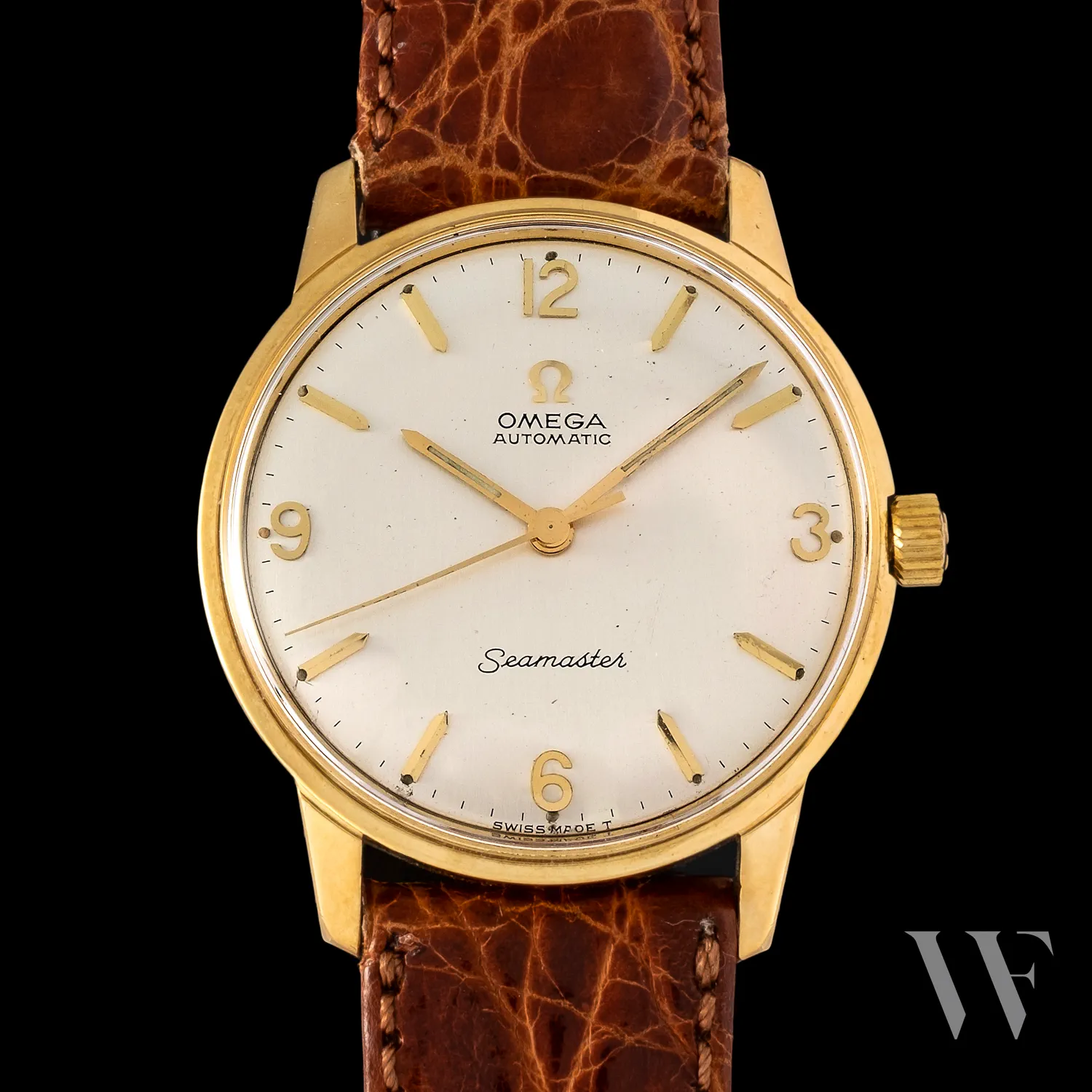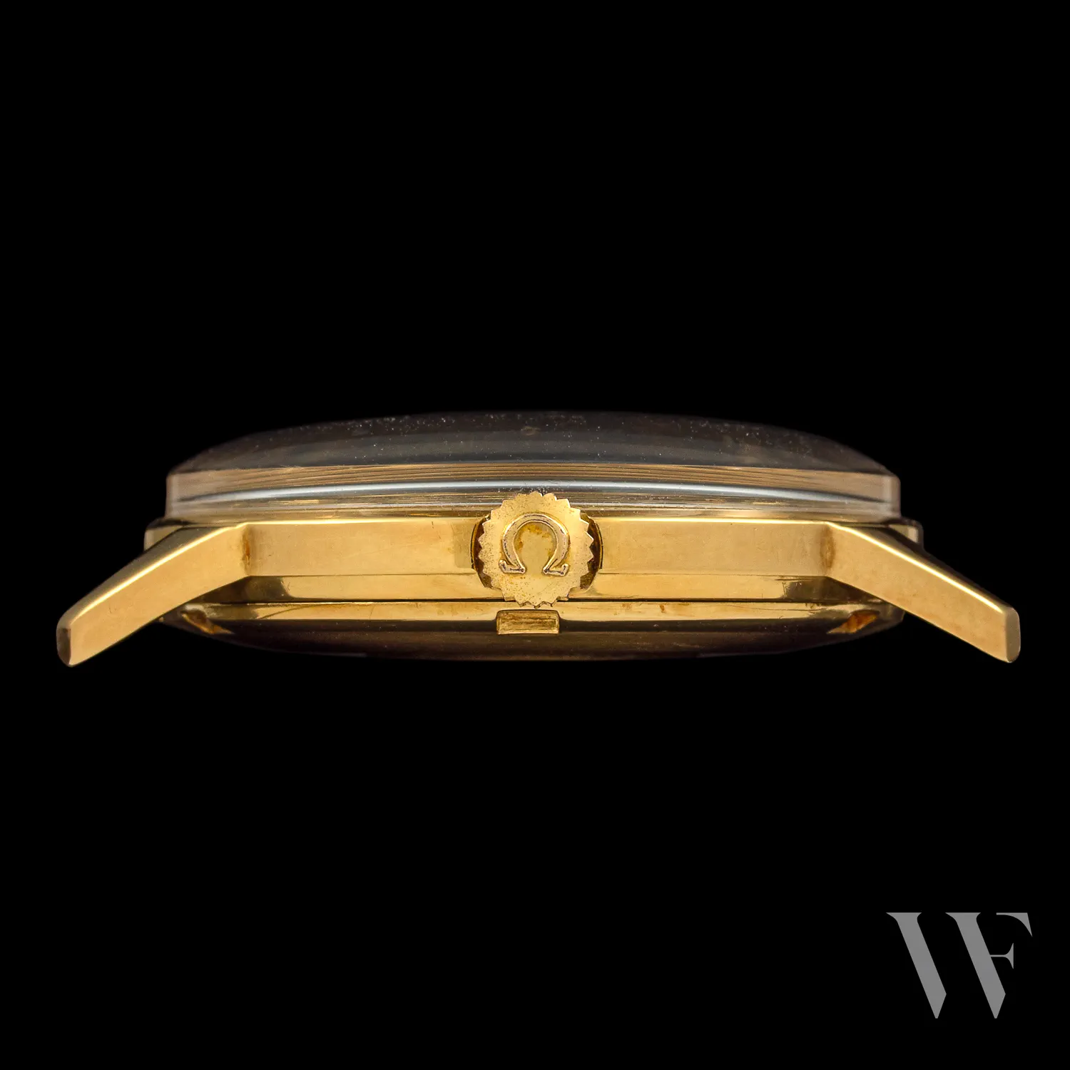 The reference was offered in stainless steel and yellow gold. Measuring around 34 mm, it is a refined dress watch with a central seconds display and no date, illustrating Omega’s balance of technical advancement and understated design during this period.