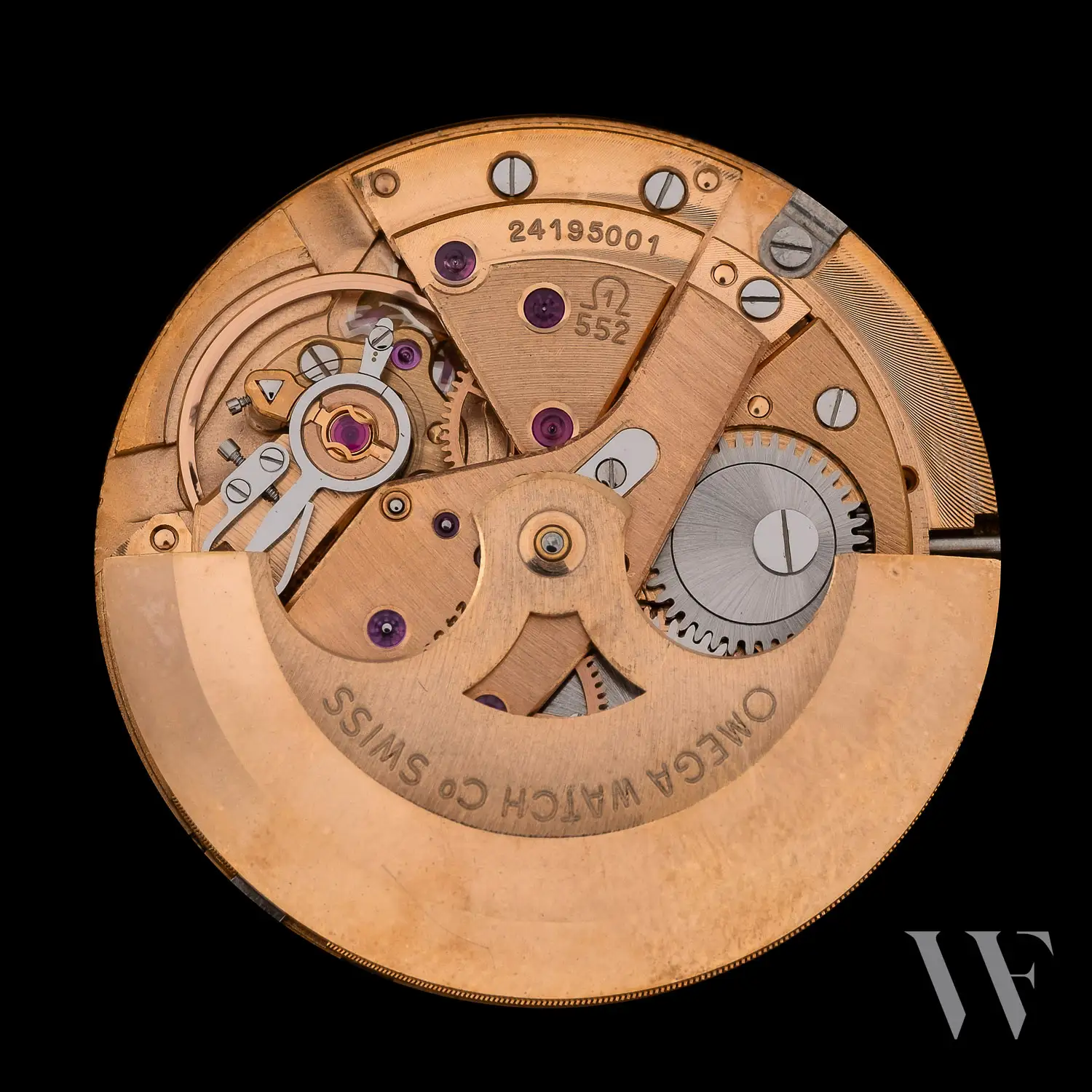 It is typically fitted with the caliber 552, an evolution of the caliber 501, featuring four additional jewels and a slimmer construction. This movement also powered the second generation of the Seamaster 300. For the U.S. market, where import duties were influenced by jewel count, Omega produced the caliber 550, a 17-jewel variant of the 552.