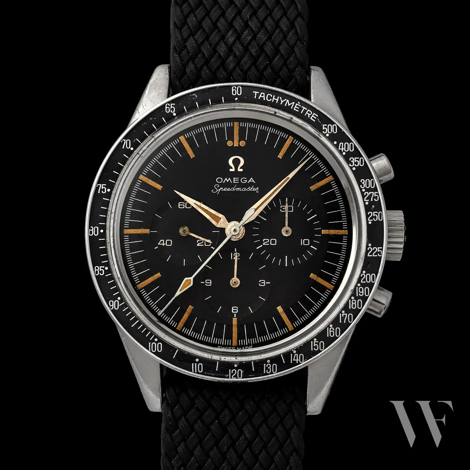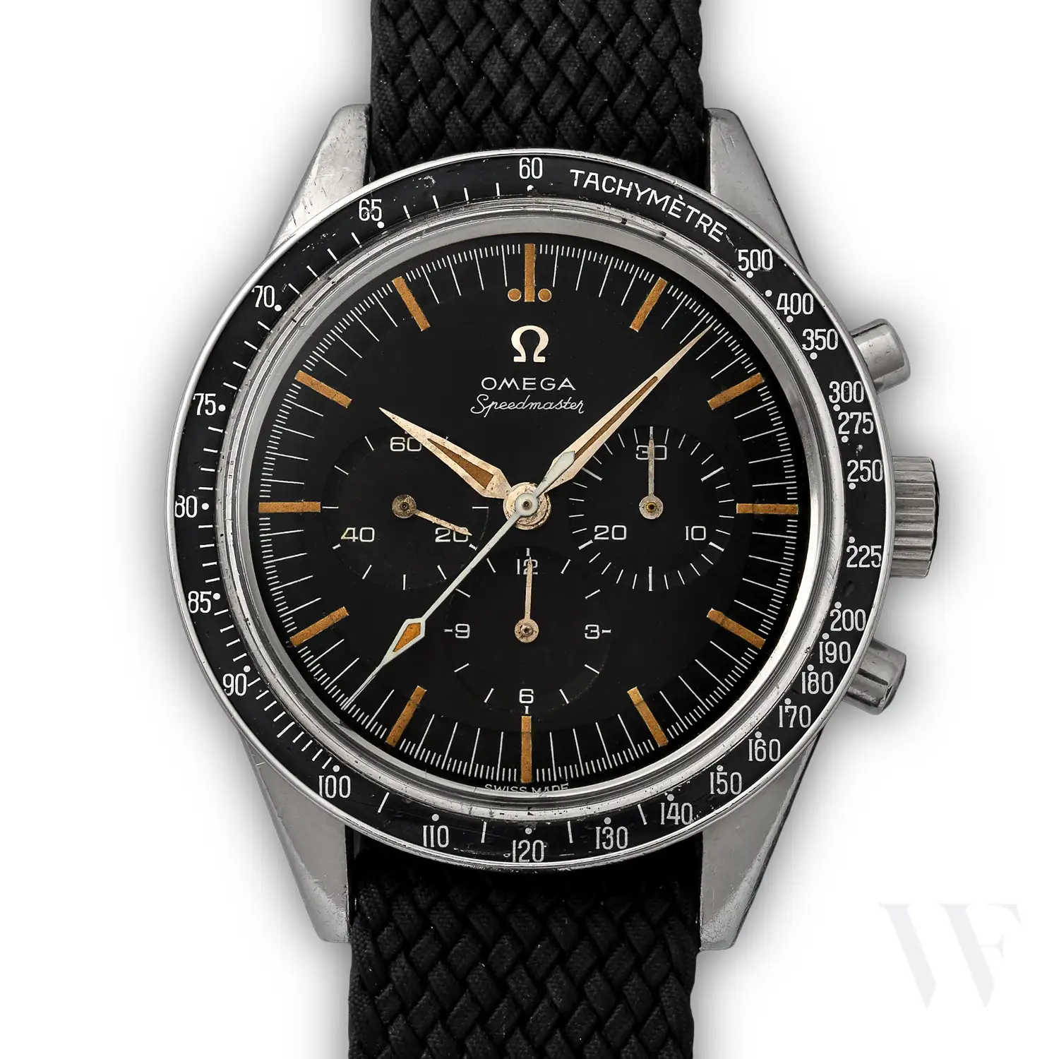 The CK 2998 reference took over from the first model, CK 2915, in 1959 and its production is estimated at 8’000 watches, divided into 8 sub-references. Its main distinctive feature is the hour and minutes Alpha hands. The CK 2998 was the first Speedmaster in space, worn by Wally Schirra as his personal watch on the Sigma 7 mission of the Mercury program in October 1962. It was also the choice of two other Original Seven astronauts: Gordon Cooper and Deke Slayton.