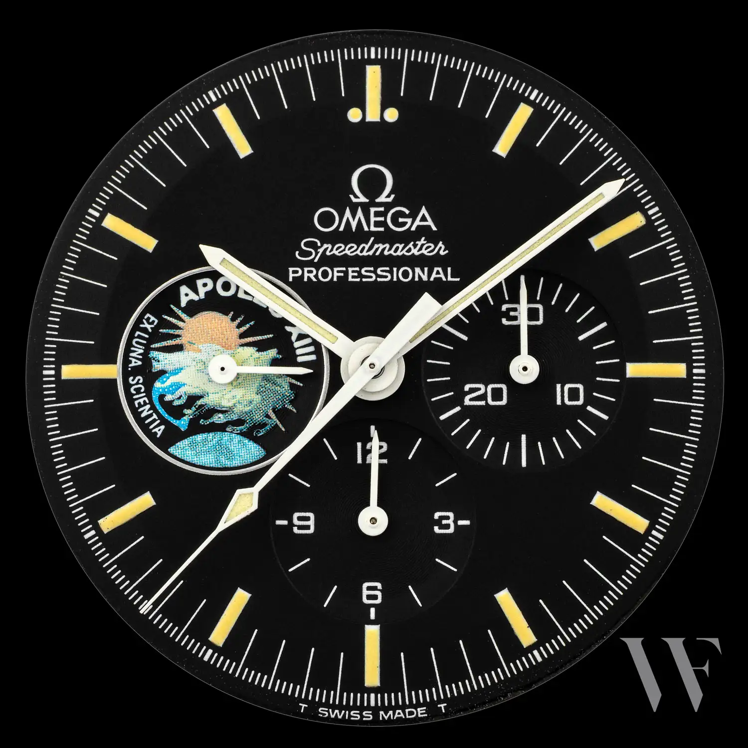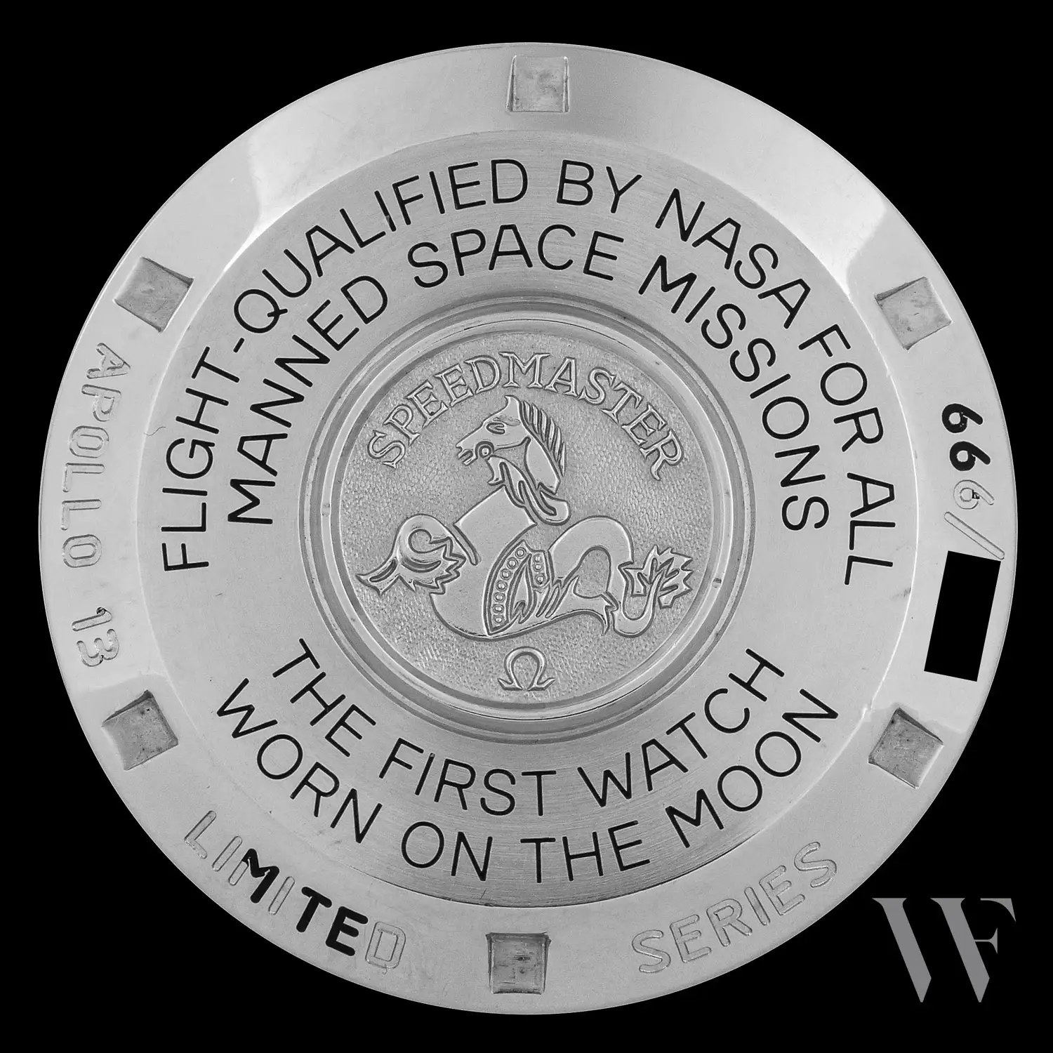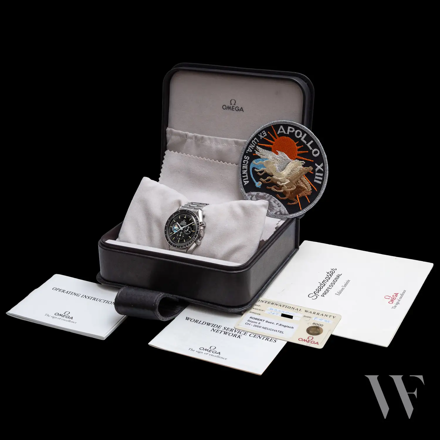 This first model of the kind in a numbered edition of 999 watches was followed in 1997-1998 by a long series of Missions models, which are described below. Among these was another similar Apollo XIII model of which 50 were made as a part of a boxed Missions set in 1997, but were not sold individually. However the original 1995 version has the numbers of the 999 watches produced as well as a dial with tritium markers that give it a fine pale yellow color.