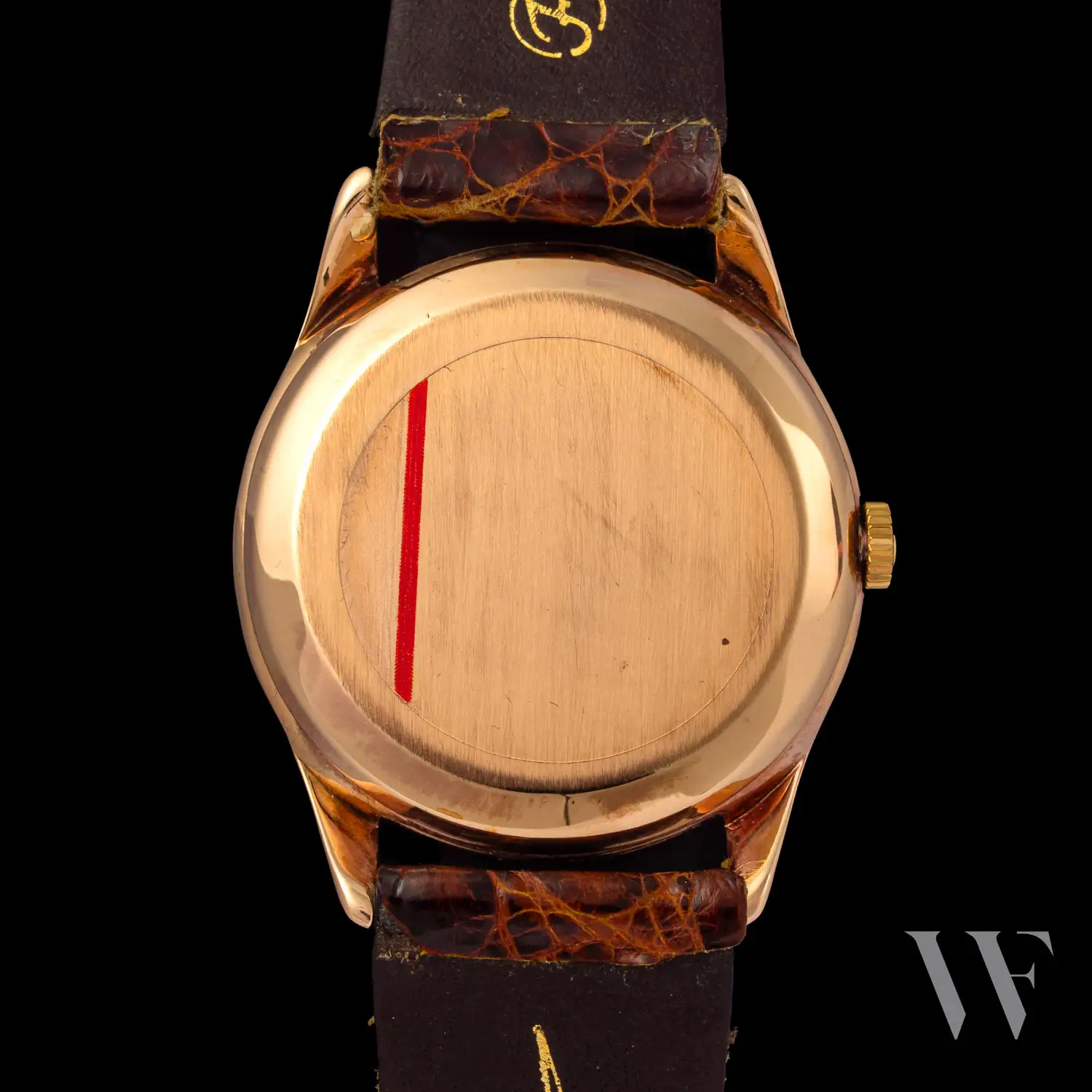Powered by the manual-wind caliber 265, it is most commonly found in rose or yellow gold, with a diameter of 36 mm.