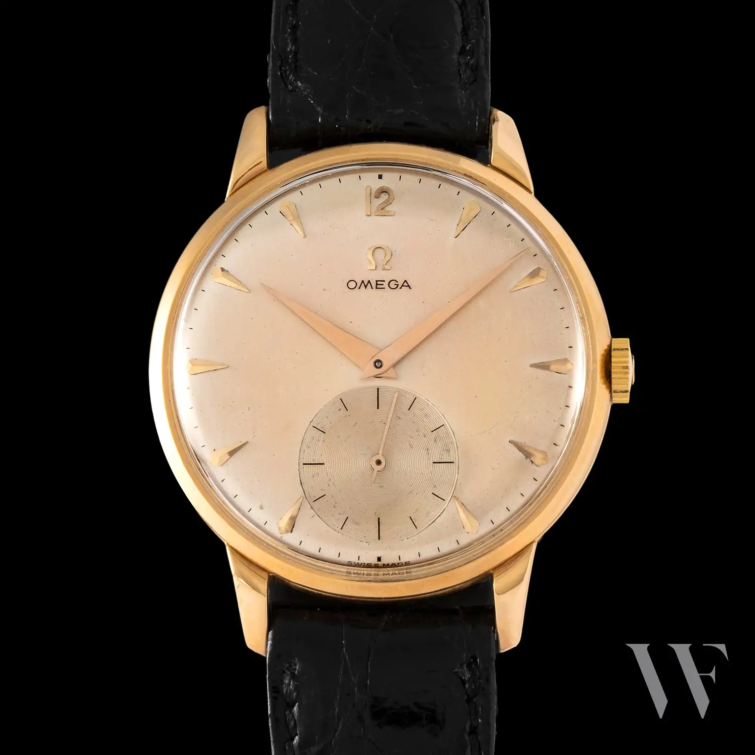 Reference 2687 is a classic early-1950s Omega dress watch, most often found in pink or yellow gold.