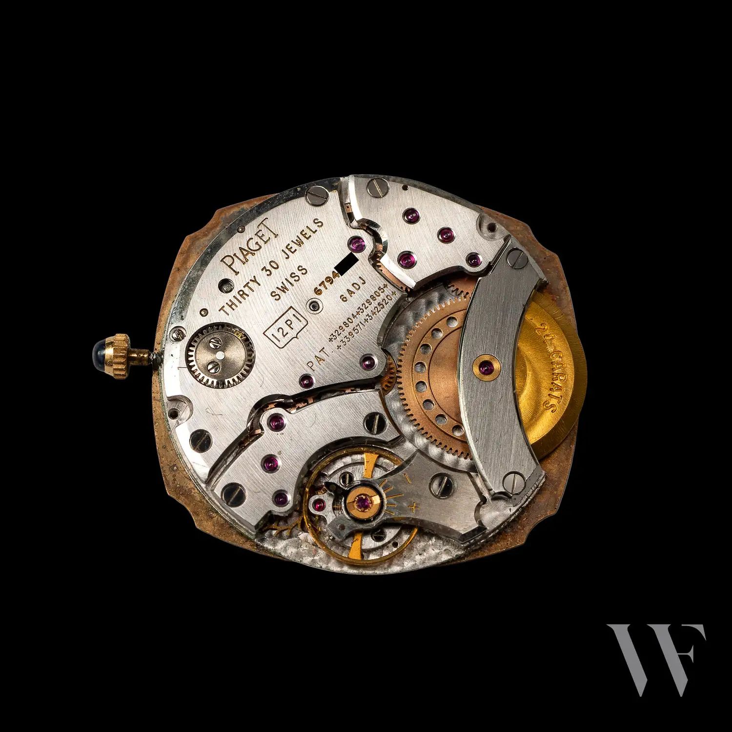 Piaget was already famous by the 1970s for pushing the boundaries of ultra-thin watchmaking. Its early icons were the Calibre 9P (manual-wind) from 1957 and the Calibre 12P (automatic with micro-rotor) from 1960 — at 2.3 mm, one of the thinnest automatic movements ever made.