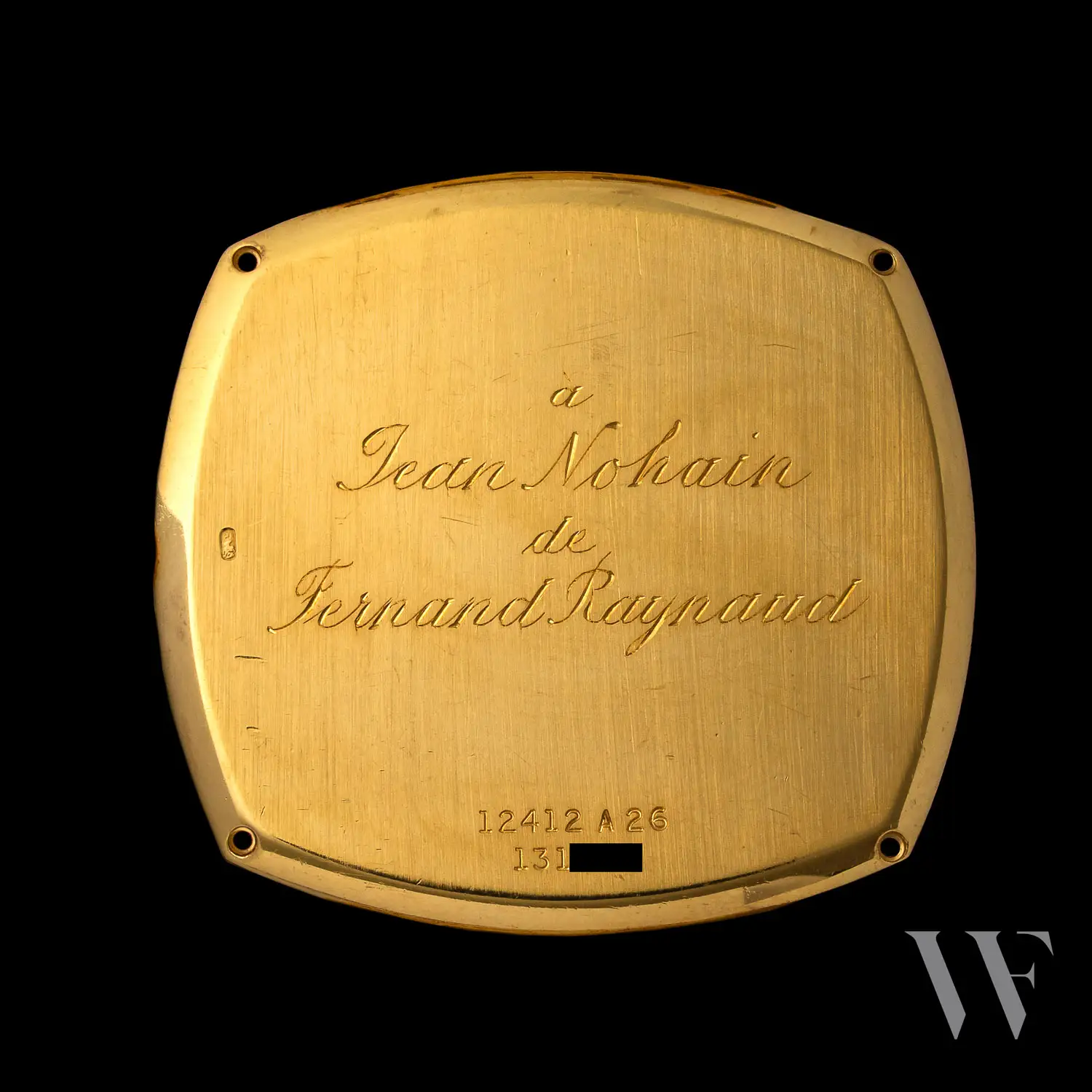 It was given by French actor and comedian Fernand Raynaud to his friend Jean Nohain, a famous figure in French television history. This gift is commemorated by a special engraving on the back of the watch.