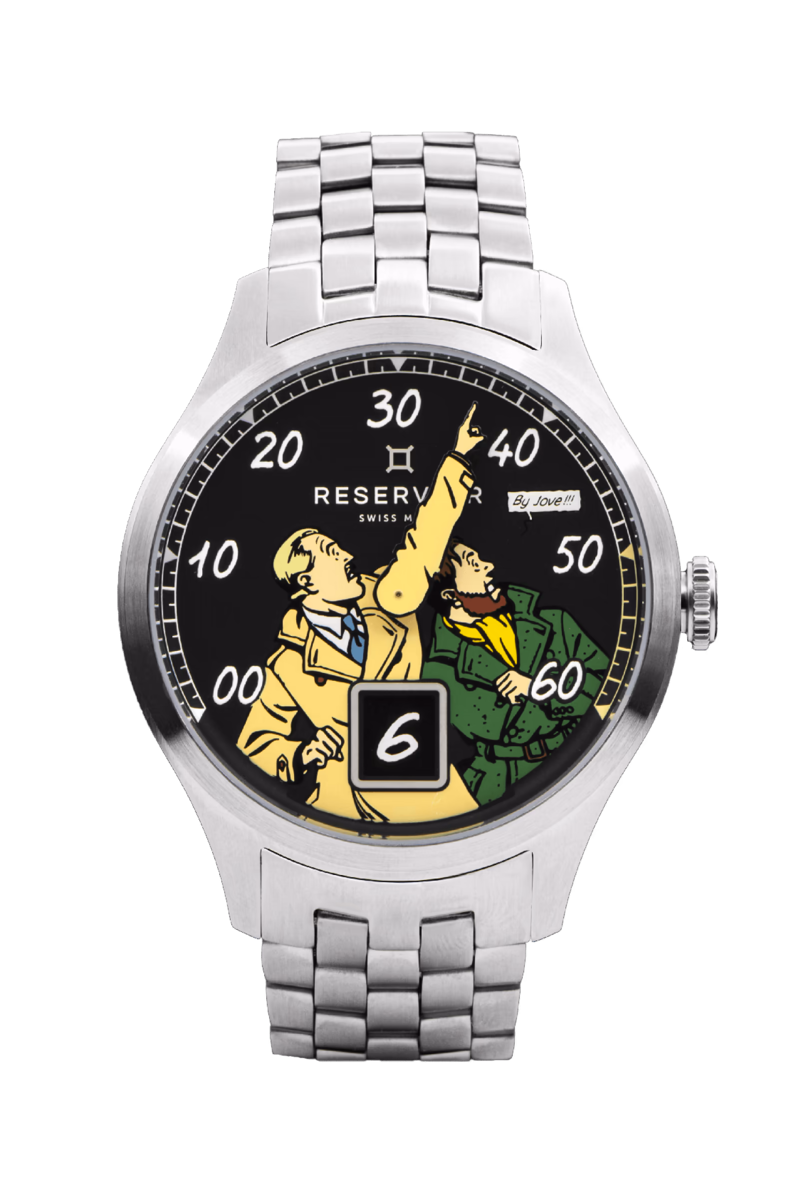 Je suis un grand fan de BD et de E.P Jacobs, et je porte une pièce que j’adore et qui a été faite pour l’anniversaire de l’album « Le Secret de l’Espadon » de Black & Mortimer. Il s’agit d’un modèle de la marque Reservoir. J’adore ce côté ludique de l’horlogerie, techniquement il y a vraiment quelque chose qui se passe, et cette montre rassemble tout ce que j’aime : c’est sérieux et amusant en même temps.